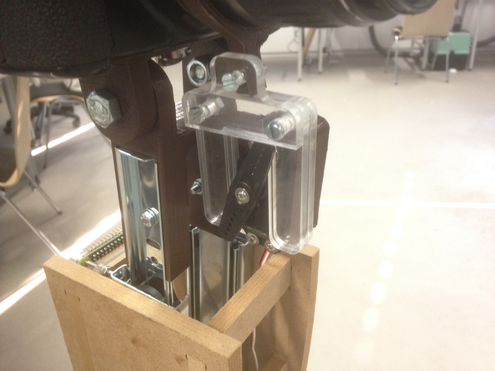 My final design consists of a simple servo socket which pushes up ring that is connected to the objective of the camera.