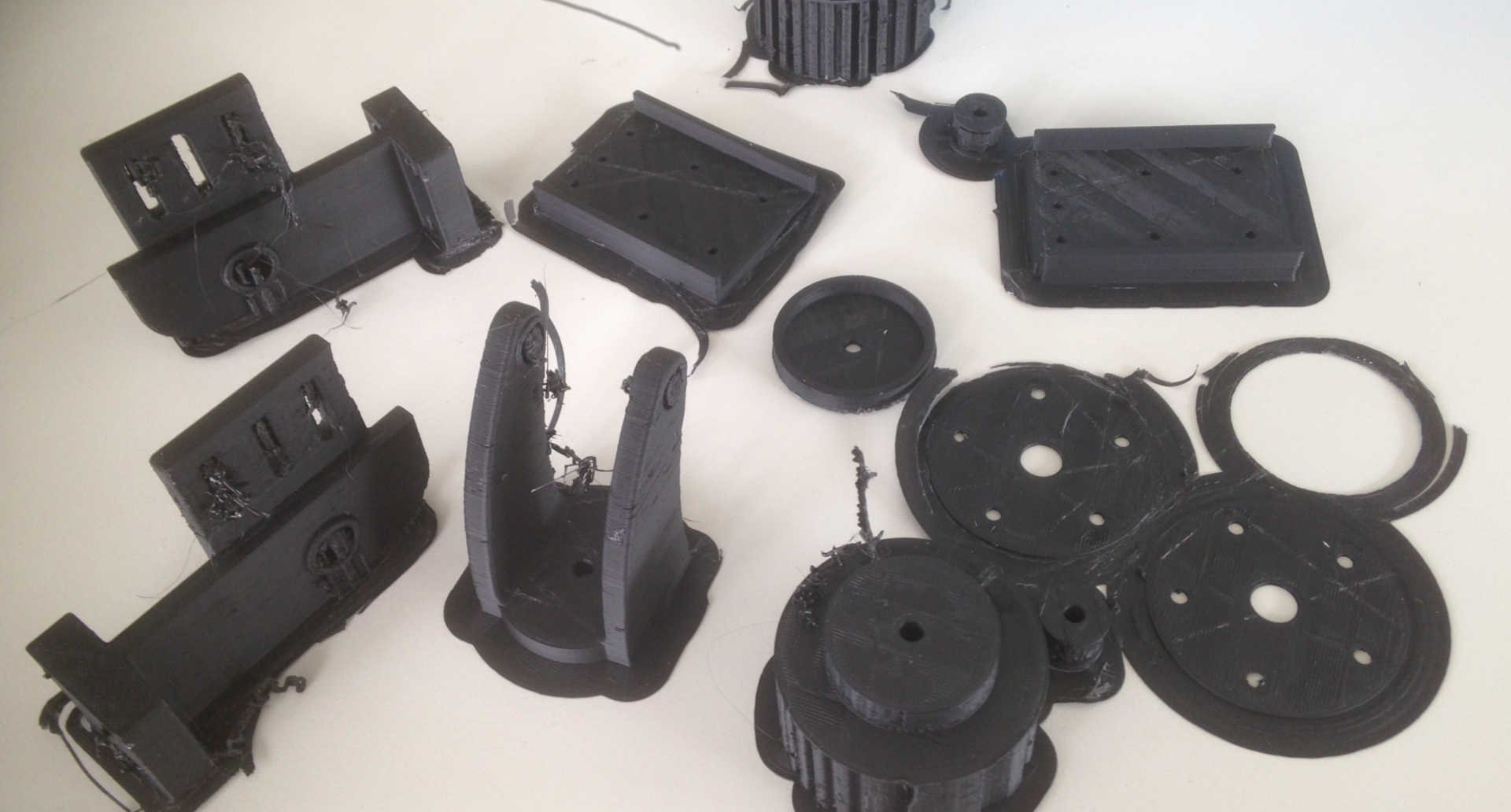 The design of a mono-side carriage purely 3D printed turned out to be insufficient. The necessity for good alignment to to the gear-wheel could only be solve be adding some components to have the shaft supported on both sides of the wheel.