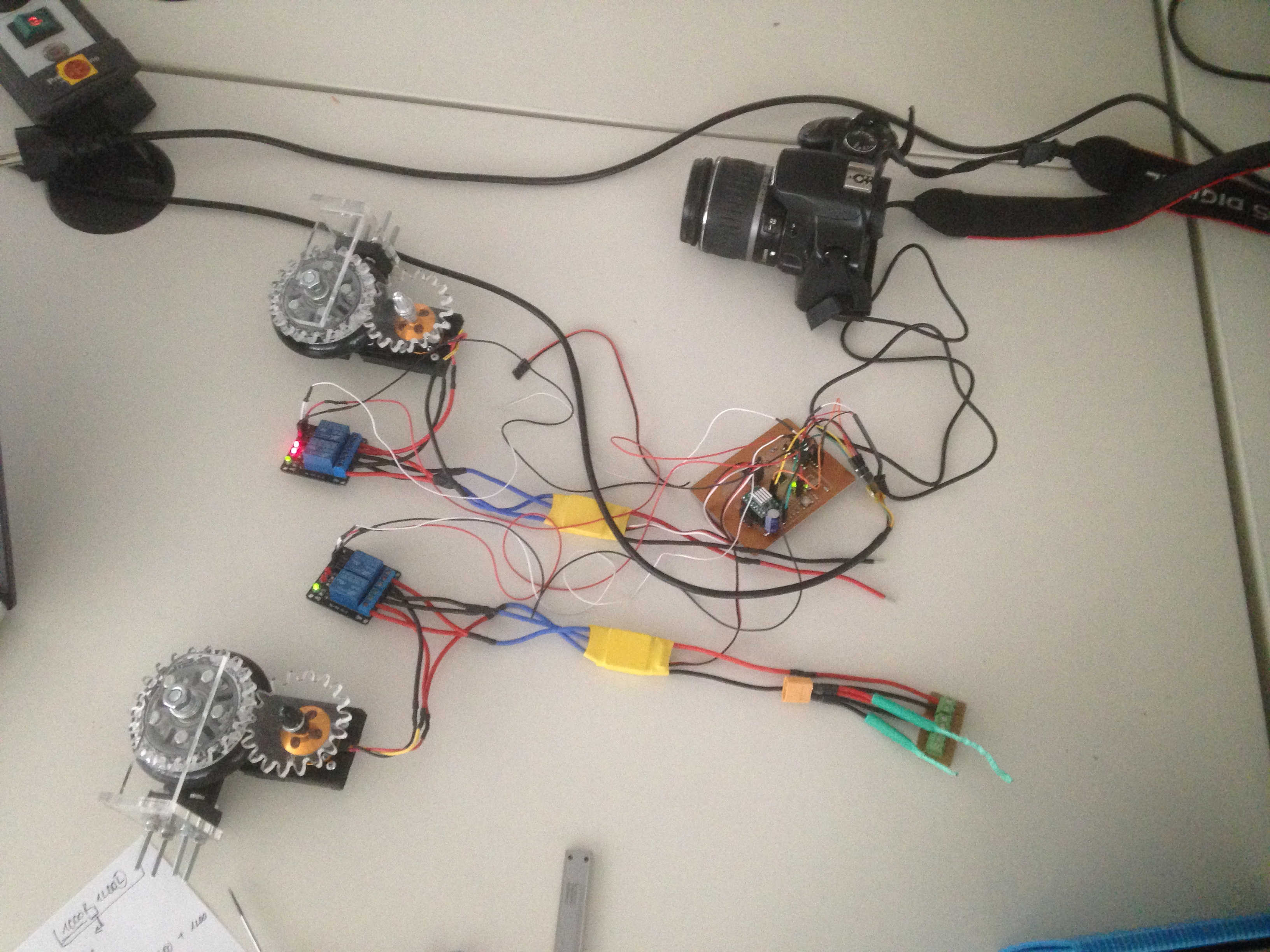 Now, it was time for a first test. I attached an ESC and did a first test of the geared drive use a remote control to send a PWM signal to the speed controller.
