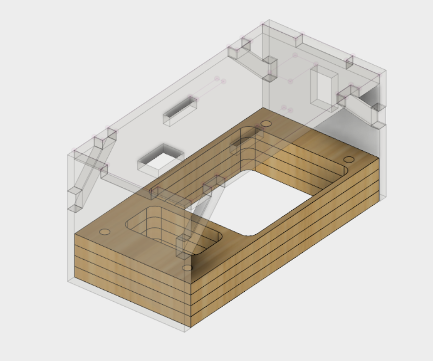 The circuit board are integrated into the electronics bay. It's a laser cut compartment from MDF covered with acrylic. The bay is integrated at the bottom of the bot.